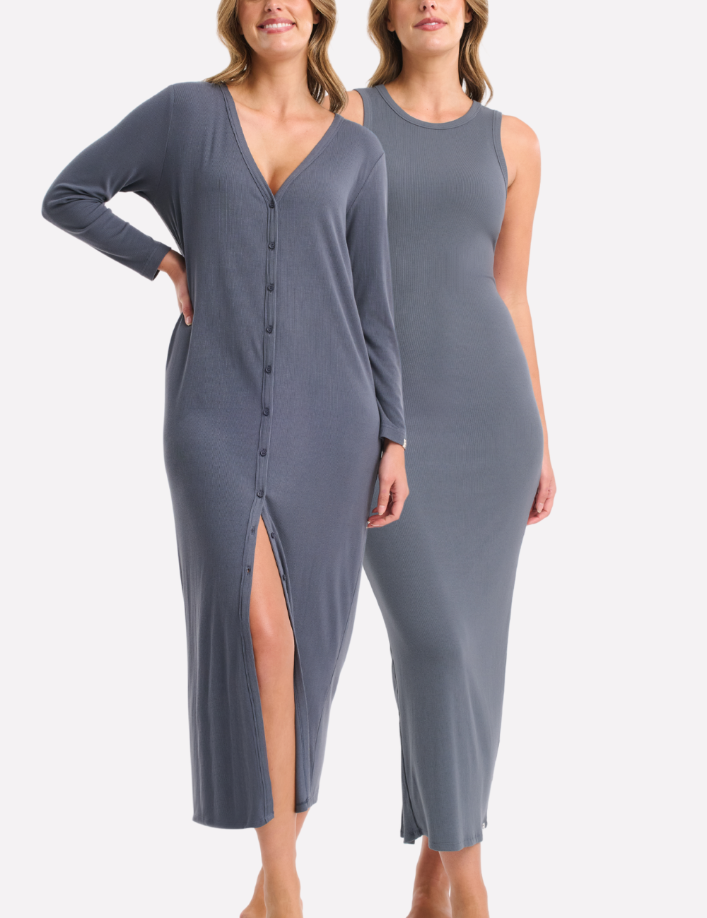 Indulge in the ultimate comfort with Ambra's Beyond The Bedroom Longline Cardi & Tank Dress. Crafted from a luxuriously soft lyocell fabrication derived from wood pulp, it is soft to the touch, cooling, and moisture-wicking, making it the perfect base for tranquillity. Featuring a front button closure and a flattering rib texture, seamlessly blending modern simplicity with a comfortable fit. Ambra’s new loungewear range redefines relaxation with its buttery touch and breathable feel, designed to take you beyond the bedroom and elevate your downtime.
