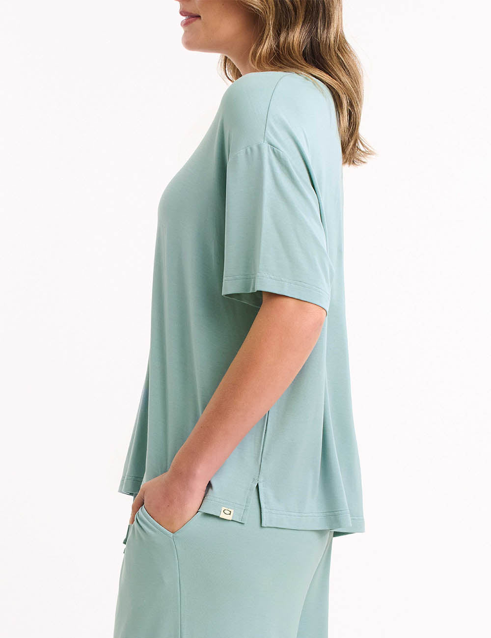 Indulge in the ultimate comfort with Ambra's Beyond The Bedroom Tee & Relaxed Short. Crafted from a luxuriously soft lyocell fabrication derived from wood pulp, it is soft to the touch, cooling, and moisture-wicking - making it the perfect base for tranquillity. Featuring a sleek racerback and a flattering scoop neckline, seamlessly blending modern simplicity with a comfortable fit. Ambra’s new loungewear range redefines relaxation with its buttery touch and breathable feel, designed to take you beyond the bedroom and elevate your downtime.