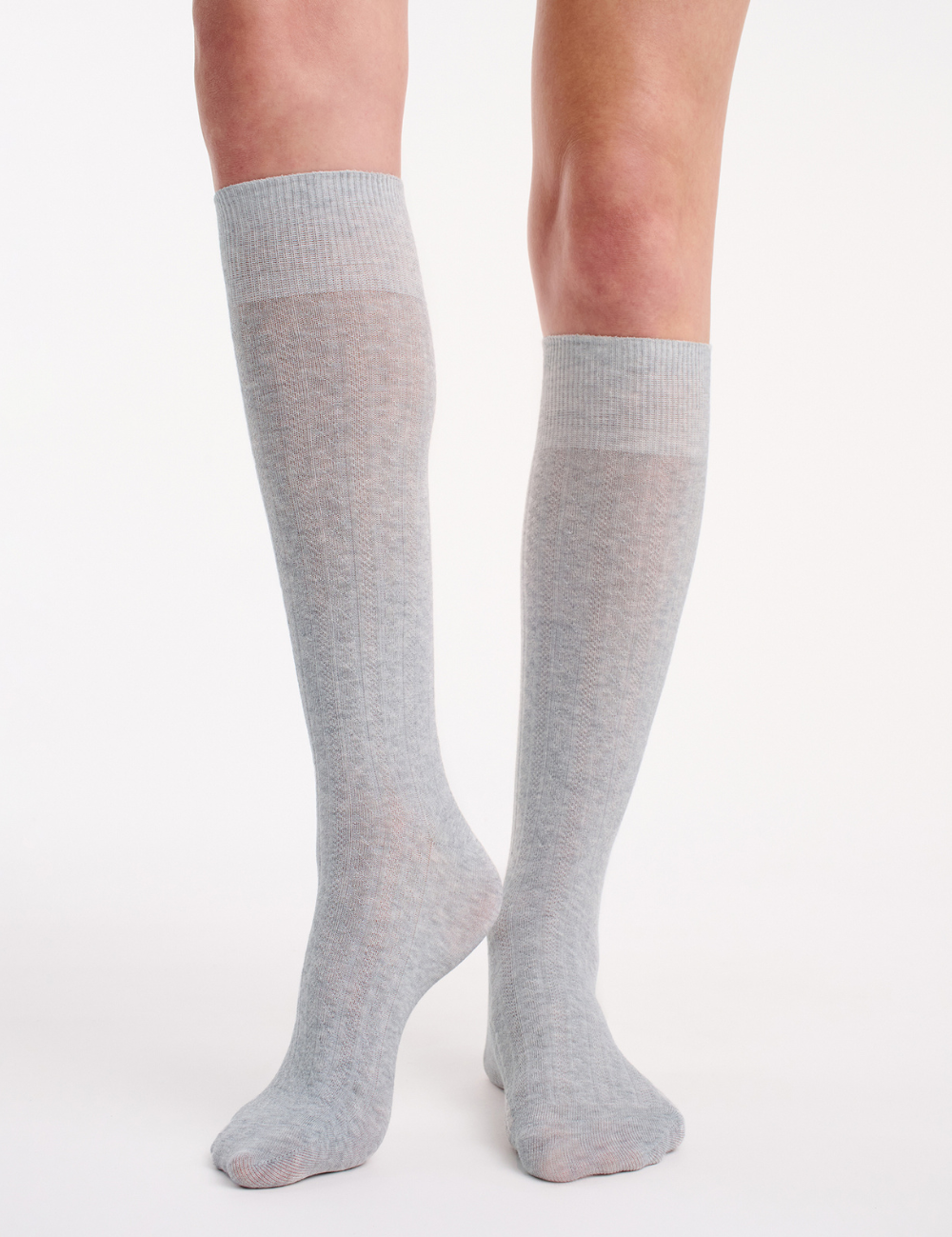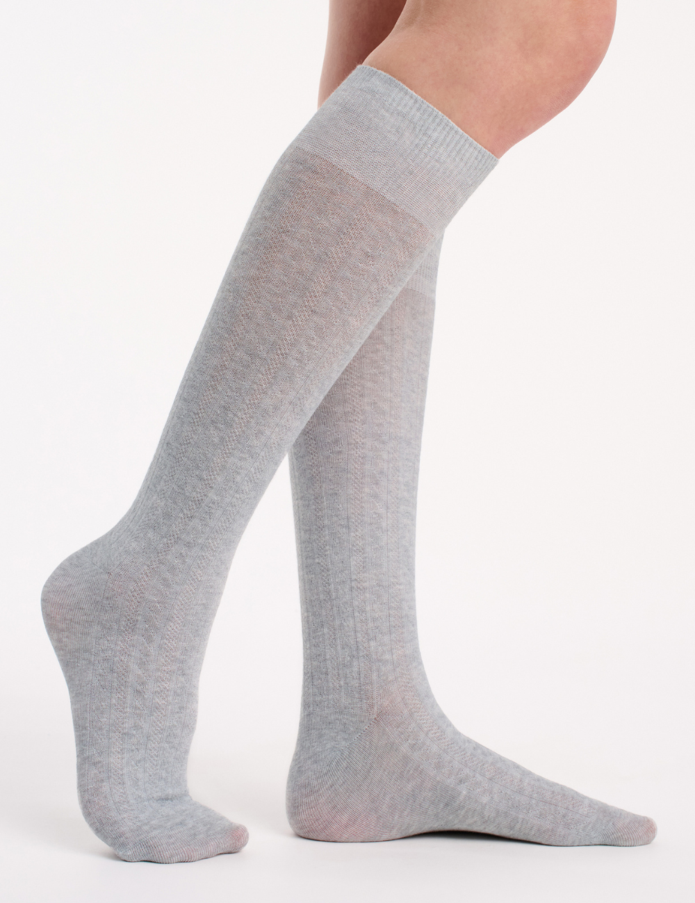 Organic Cotton Cable Knit Knee High - Grey Marle