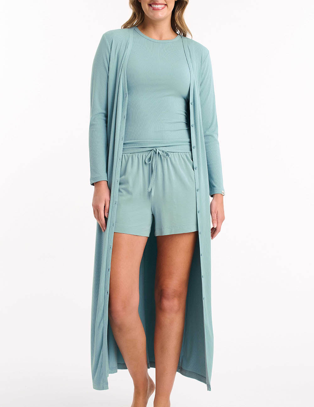 Indulge in the ultimate comfort with Ambra's Beyond The Bedroom Longline Cardi. Crafted from a luxuriously soft lyocell fabrication derived from wood pulp, it is soft to the touch, cooling, and moisture-wicking - making it the perfect base for tranquillity. Featuring a front button closure and a flattering rib texture, seamlessly blending modern simplicity with a comfortable fit. Ambra’s new loungewear range redefines relaxation with its buttery touch and breathable feel, designed to take you beyond the bedroom and elevate your downtime.