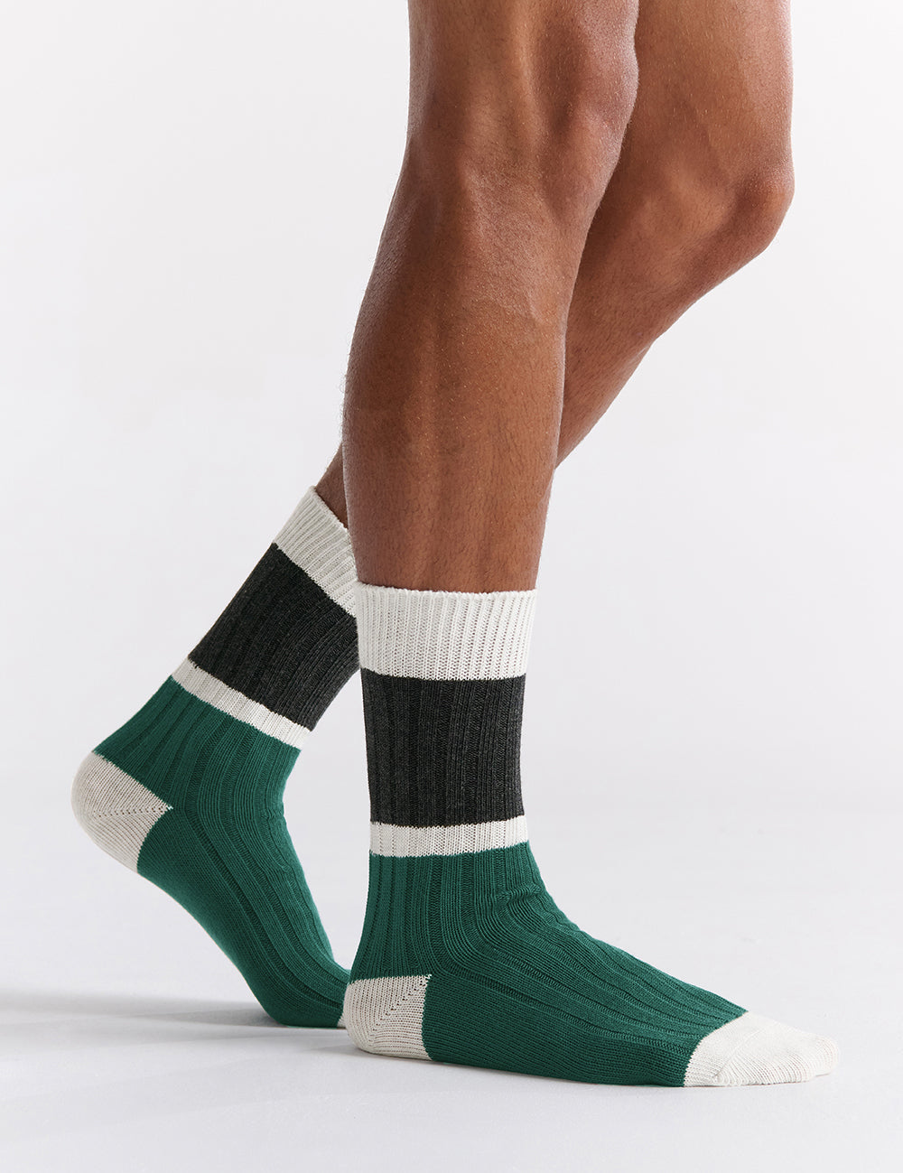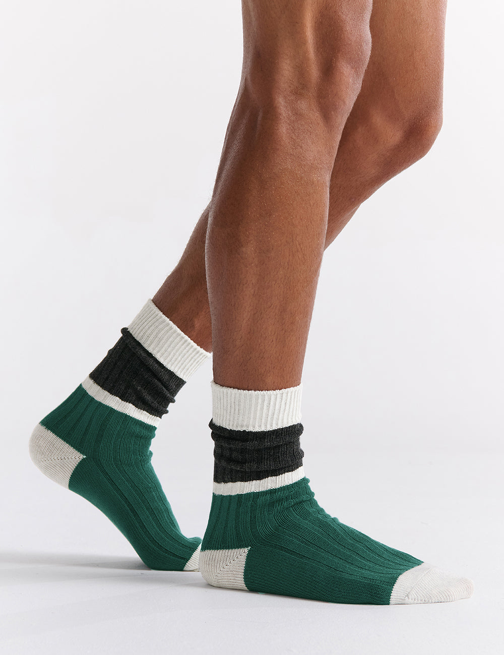 Elevate your essentials with our Organic Cotton Chunky Rib Splice Crew, crafted from soft organic cotton for the perfect blend of style, comfort, and sustainability. Featuring a tri-tone design and a crew length fit, ideal for both casual and professional settings.