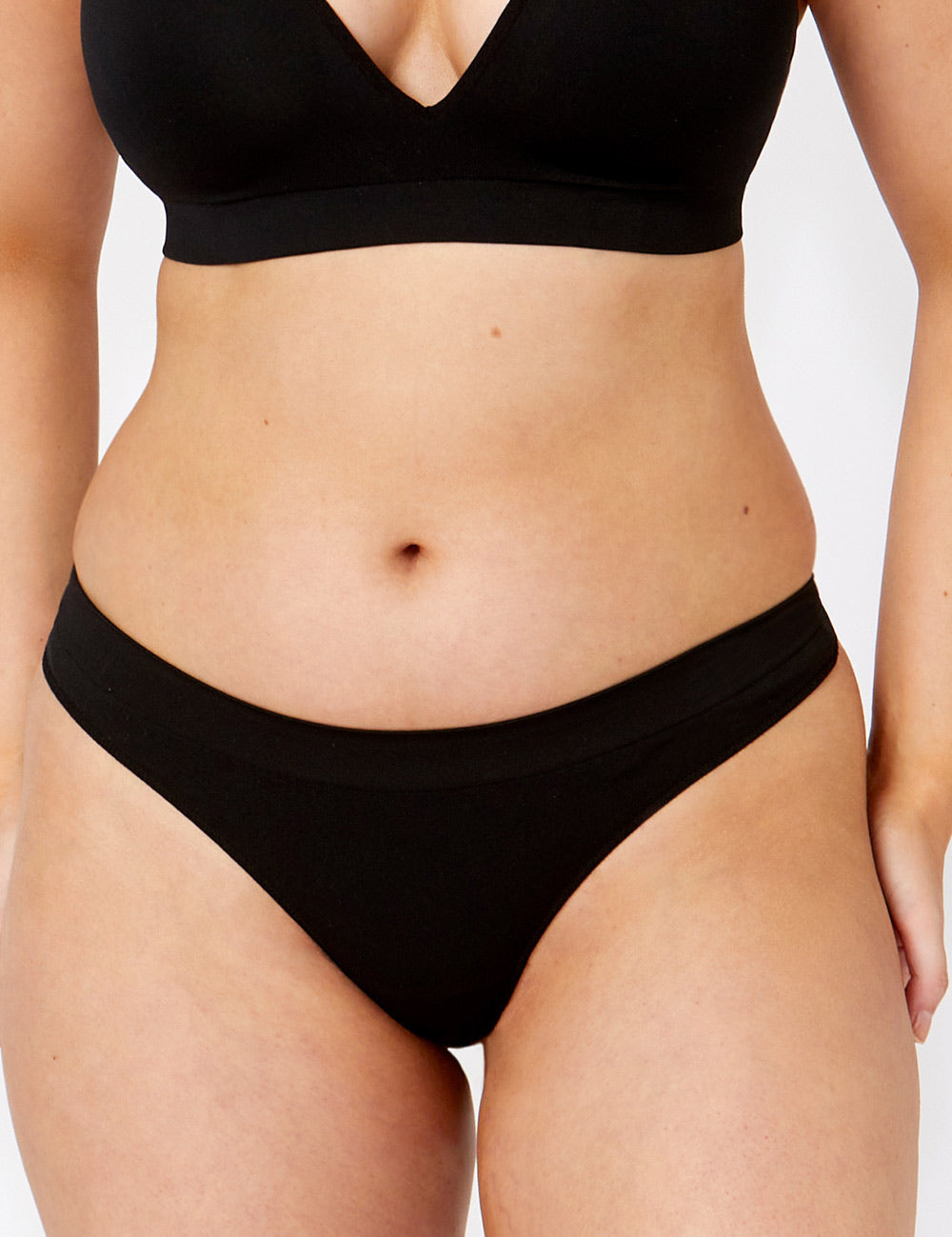 It’s pretty difficult for me to find thongs that are seamless, comfortable, and stay put. These do stay put but they have a tendency to roll on the hips, regardless of whether I sit them low (and don’t stretch the sides too much) or higher up. It doesn’t make them any less comfortable but they will bunch up during workouts when wearing leggings. I also find that the front has so little coverage compared to other thongs, as it’s rather high cut, so this might be the reason why it doesn’t sit well. Other than that, very comfortable and doesn’t feel like it digs in and doesn’t give you a painful wedgie. Might suit different body types (I have a curvy lower half).