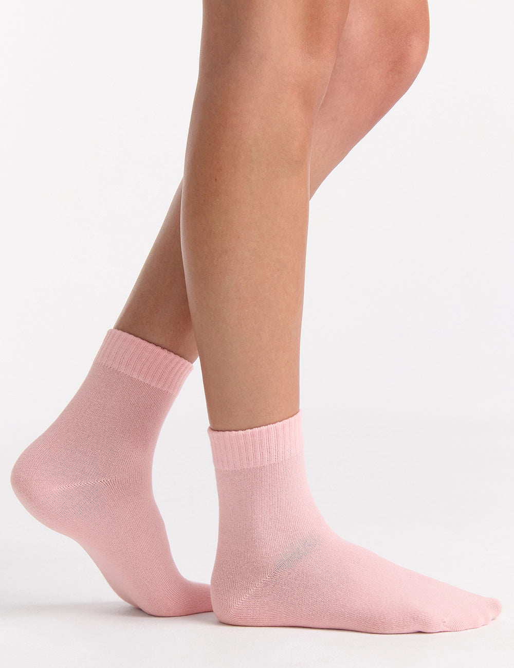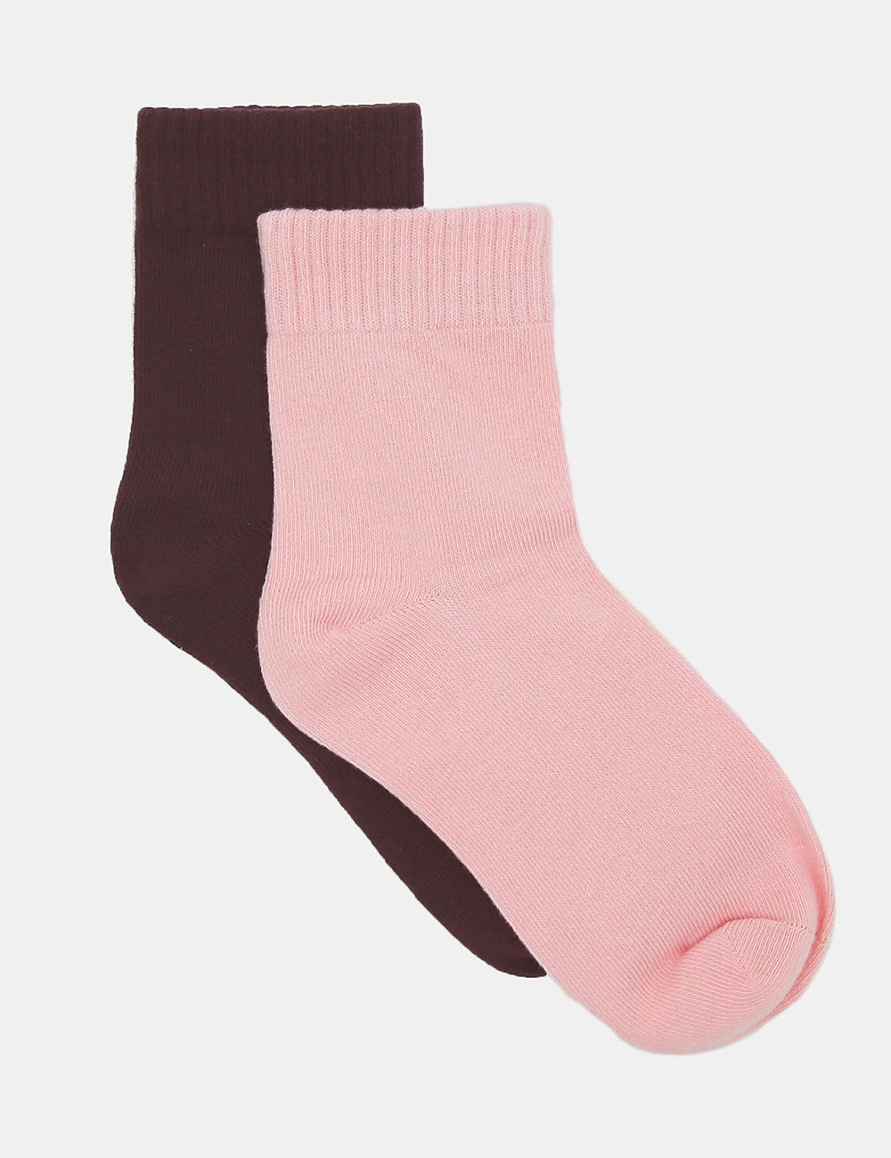 Organic Cotton Rib Top Crew Sock 2 Pack - Ballet/Fudge