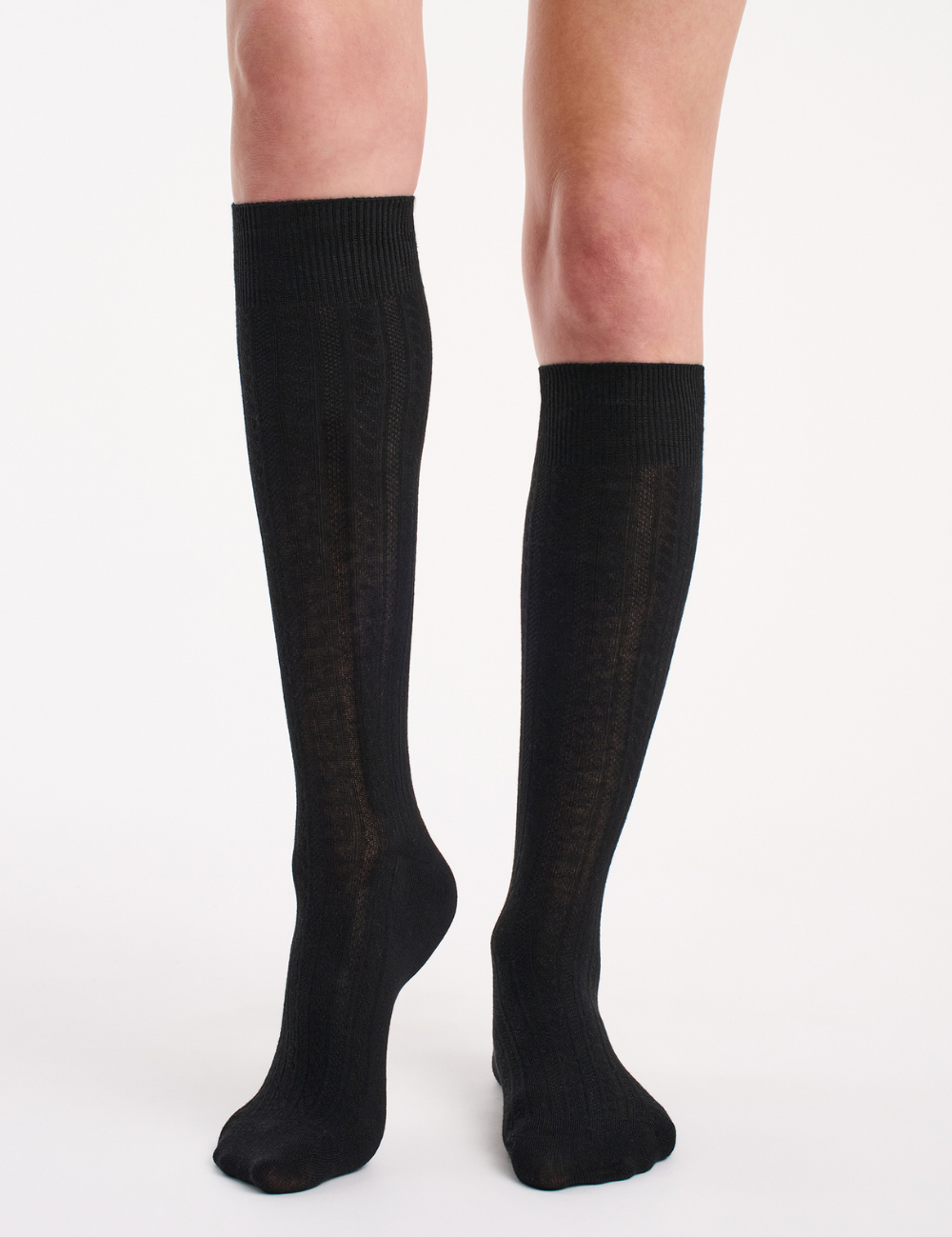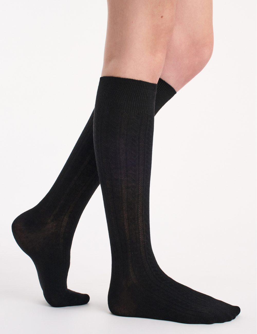 Organic Cotton Cable Knit Knee High - Black