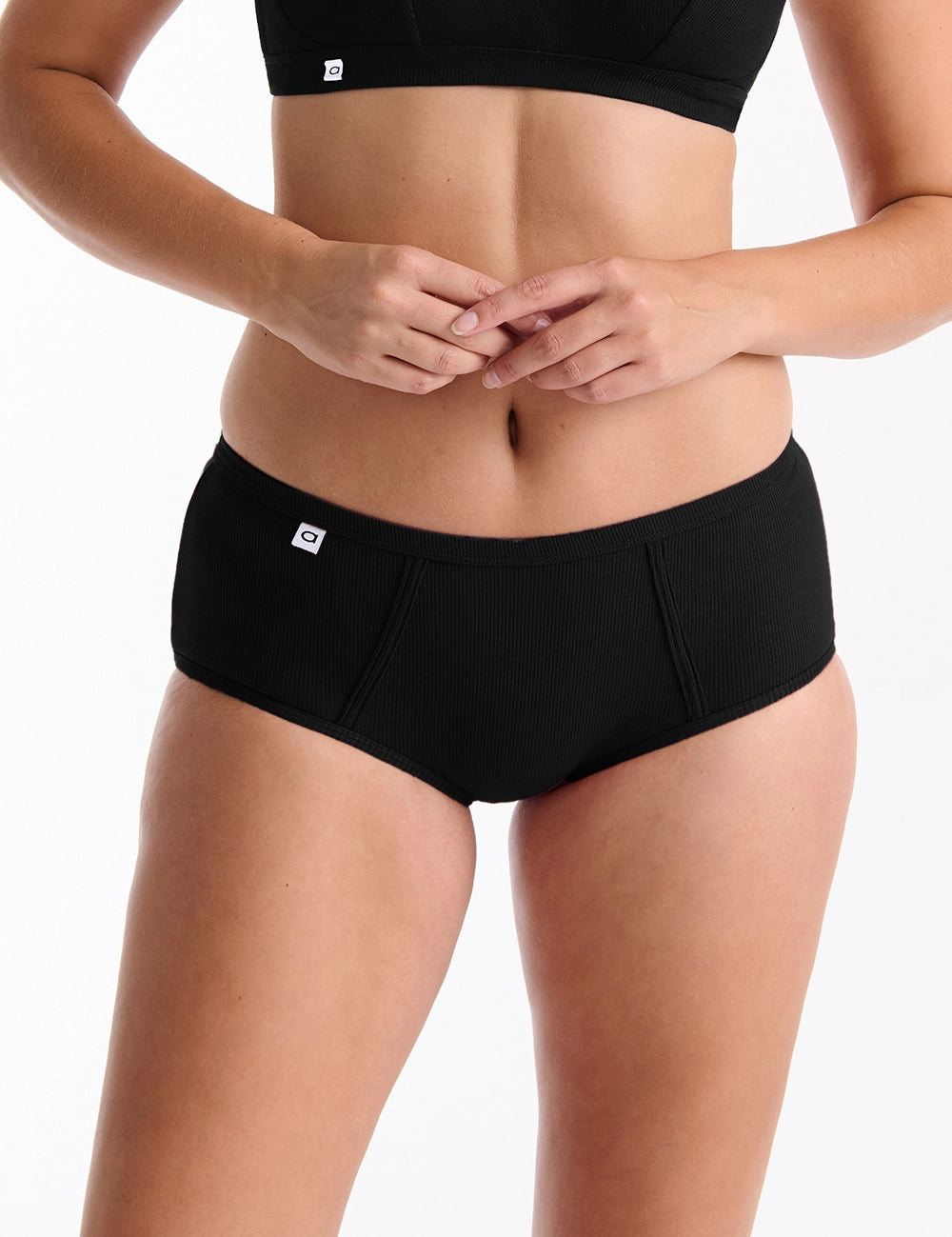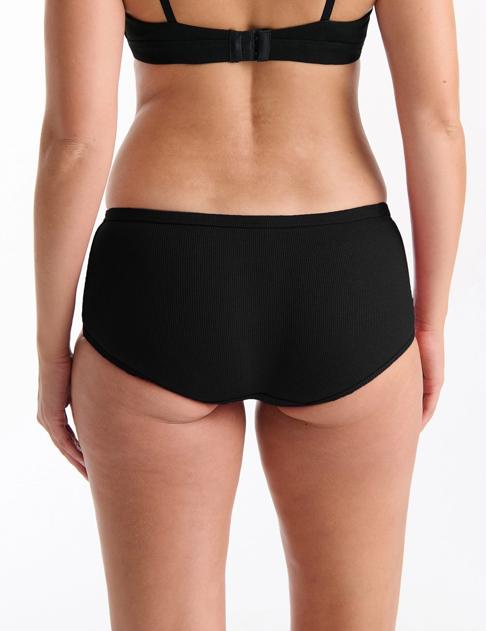 A minimalist take on underwear-outerwear dressing, Ambra's Refined Rib Boy Short creates appeal with subtle design lines and effortlesss silhouettes. This range is the ultimate blend of luxury and relaxation in timeless transeasonal neutrals, adorned with Ambra branding.