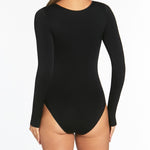 Seamless Smoothies Shelf Bra Long Sleeve Bodysuit - Black