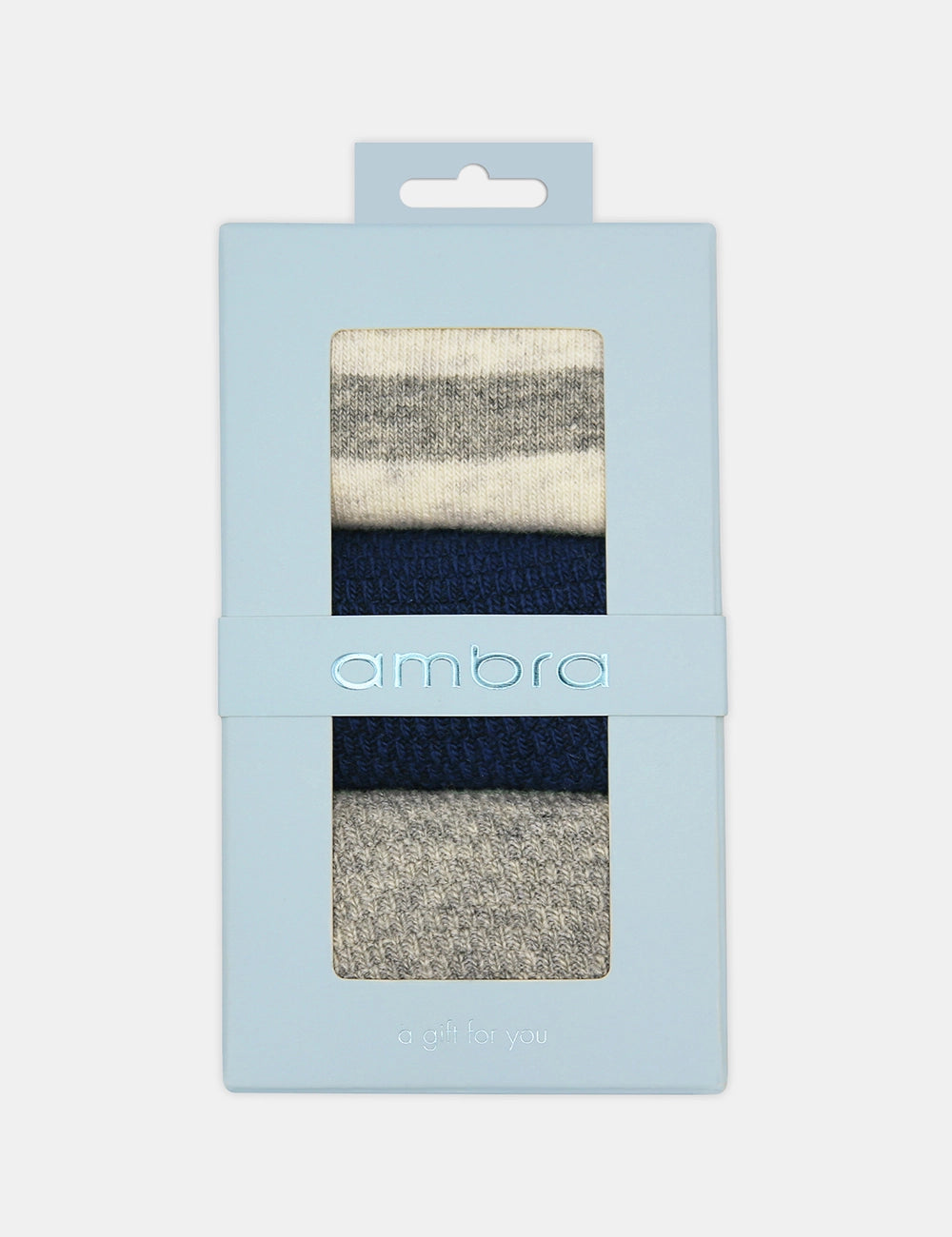 Stay cosy all season with Ambra's winter blend crew sock gift box. This beautifully crafted three-pair set features soft, winter-weight crew socks designed for everyday comfort and style. Presented in a premium gift box, it is the ideal winter treat for yourself or a thoughtful gift for someone special.